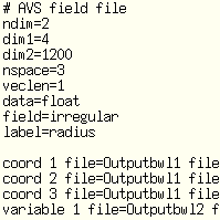 The simulation generates a 2D field data as output (1st dimension for the positions, 2nd dimension for the time), where each node represents one object at a specific time (position and radius). This data can be easily used by most common visualisation tools (e. g. AVS, Explorer).